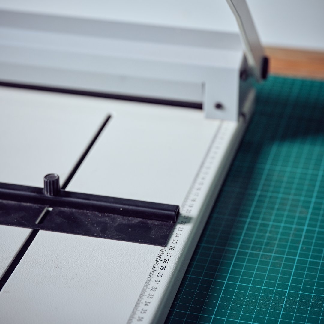 - Möglichkeit der Komplettbearbeitung (Bindungen, Falzen, Rillen, Perforation, Nummerierung) und Verpackung in Sets.
